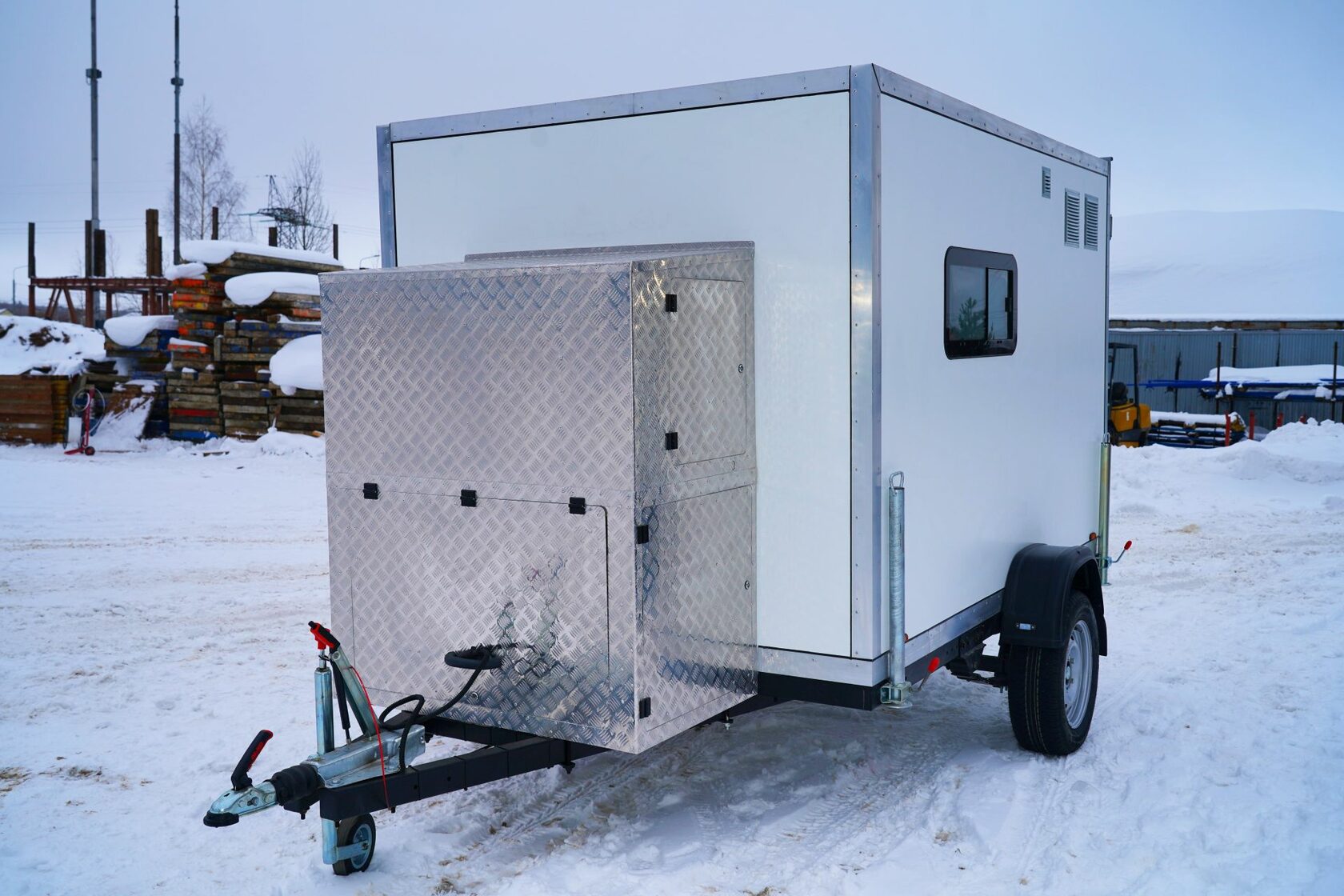 Этот прицеп был построен по индивидуальному заказу для ремонтной бригады, которая занимается ремонтом теплосетей и коммуникаций для крупного завода. Особенность этого прицепа в том, что есть бытовая функция (люди могут согреться, отдохнуть), а в задней части прицепа находится оборудование, необходимое для беспрерывной работы на удаленной локации.
